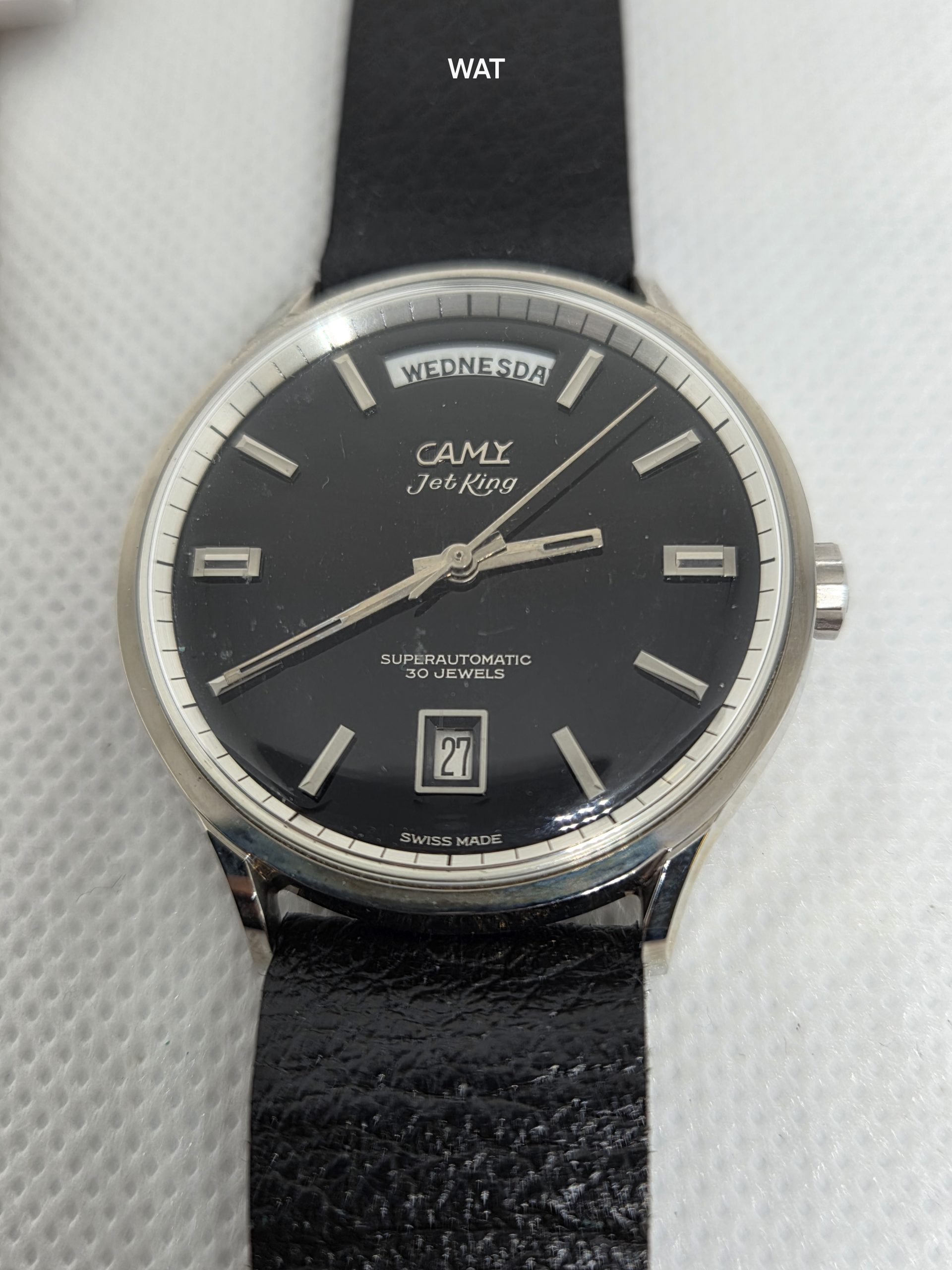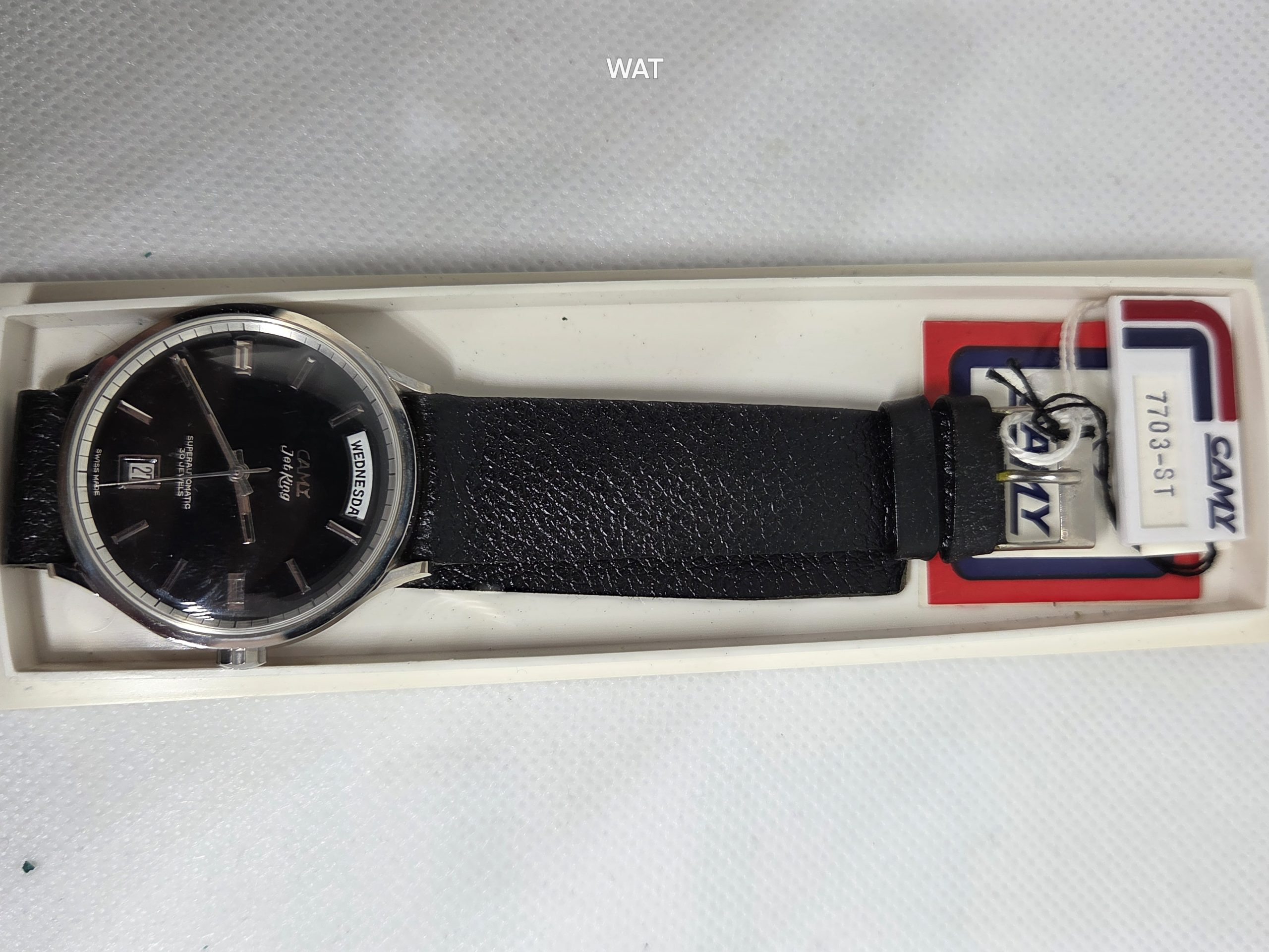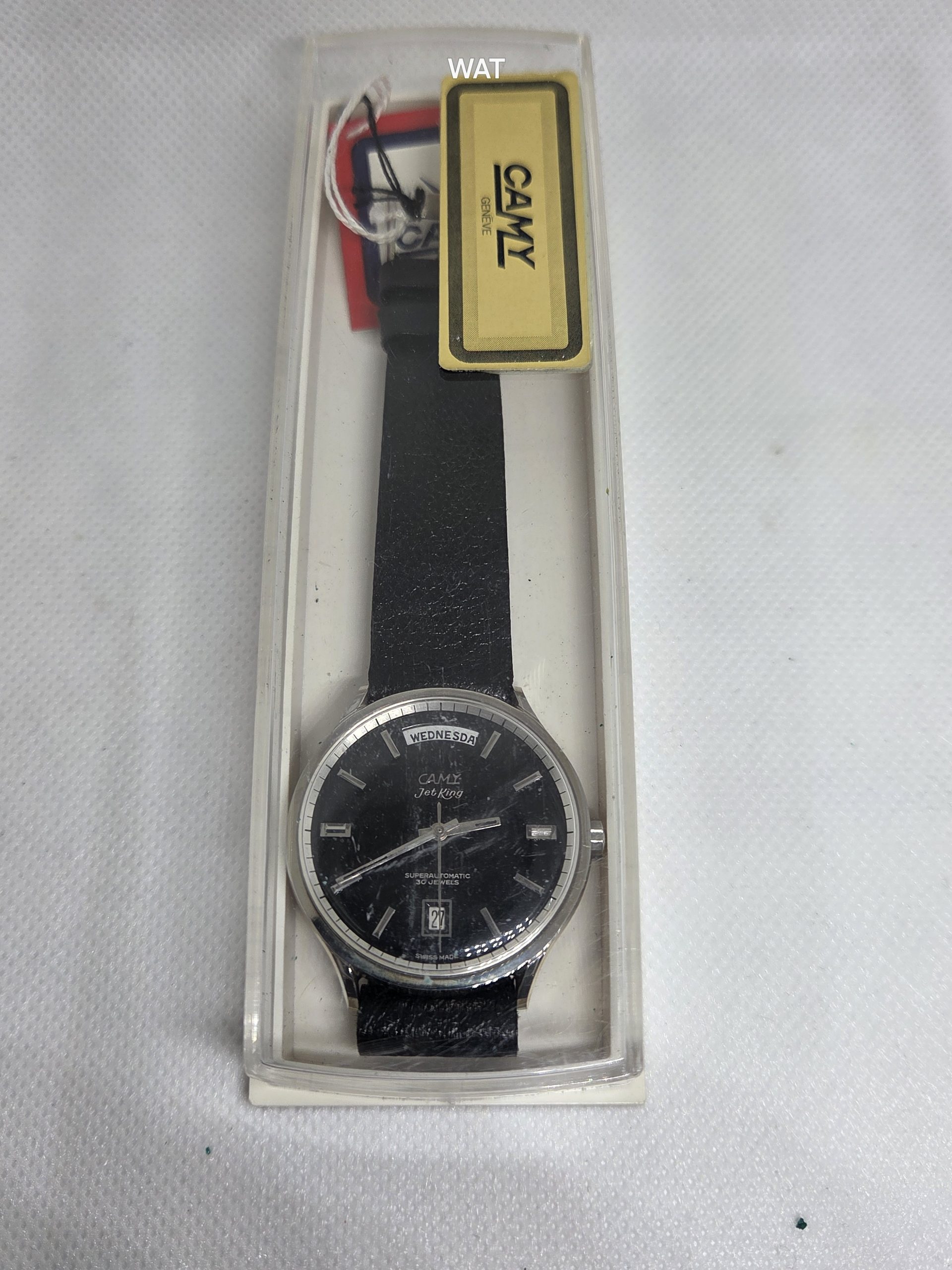 This is a NOS Jet King, automatic with Date at 3 ‘o clock and Day of the week at 12 ‘o clock